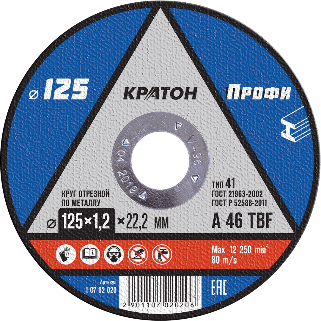 Отрезной круг Кратон "Профи" A 46 TBF 125х2,5х22,2 мм создан с использованием сплава окиси алюминия и синтетической бакелитовой смолы. Абразивный диск укреплен двойным слоем сетки из стекловолокна, и предназначен для установки в аккумуляторные модели и полупрофессиональные УШМ, с диаметром шпинделя 22,2 мм. Круг без усилий выдерживает значительные нагрузки и подходит для прорезания пазов и углублений в металлических конструкциях, а также для резки профилей и листового железа, стали и чугуна.