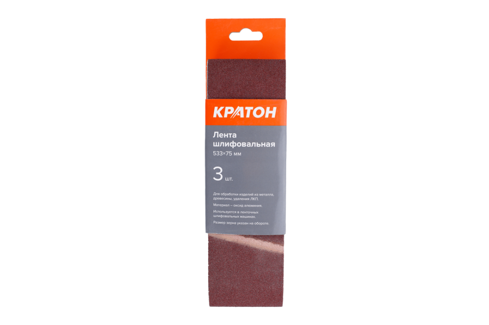 Лента шлифовальная Кратон 533 х 75 мм P100 в наборе идет 3 штуки. Подойдет для ленточных шлифовальных машин. Зернистость P100 легко справится с шлифованием любых пород древесины ДСП, пластика. Оснастка из оксида алюминия чаще всего применяется в деревообрабатывающим производстве. После шлифования поверхность остается гладкой, без заусенец.