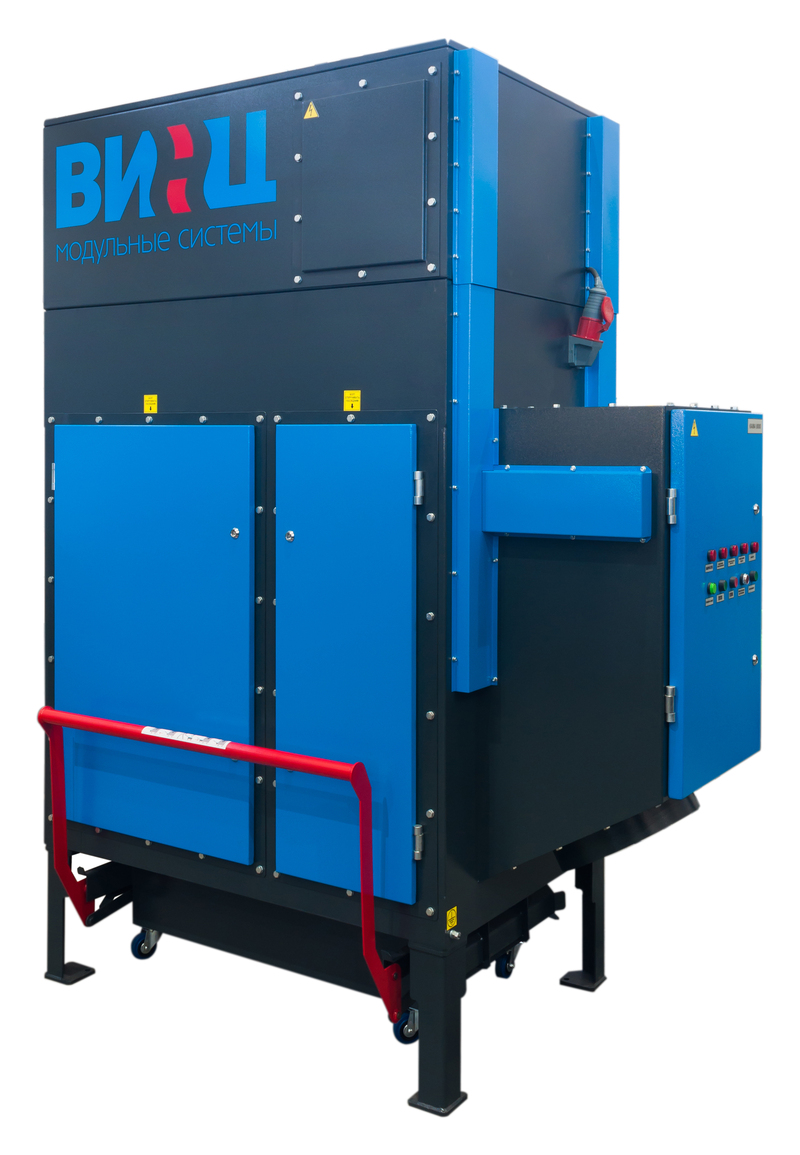 - Система автоматического пожаротушения включающая: спектральный датчик открытого огня, порошковые разрывные огнетушители 2 шт., свето-звуковая индикация оповещения возгорания, муфта для подсоединения пожарного шланга к корпусу установки, аварийная остановка вентилятора при срабатывании системы пожаротушения;