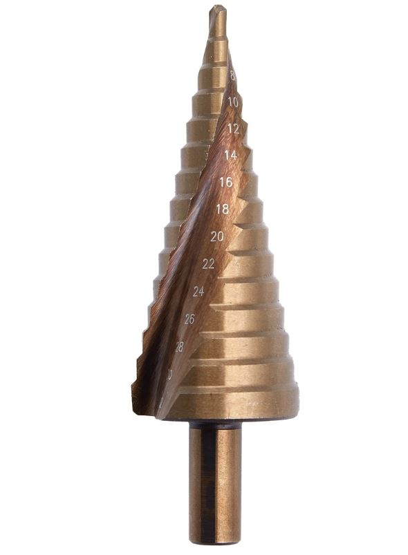Сверло по металлу 4-32 мм ступенчатое цилиндрический хвостовик винтовое Р6М5/М2 WOLFSTAR – цельное сверло из быстрорежущей стали Р6М5/М2 (M2 стандарт AISI/ASTM). Сталь Р6М5 при повышении температуры, минимально нагревается, это повышает длительность работы без перерыва. Сталь хорошо держит заточку, имеет высокую вязкость. Держит нагрузки от удара для обработки различных материалов. Имеет конусовидную форму со ступенчатым переходом от меньшего диаметра к большему. Также имеет винтовую канавку для лучшего отведения стружки в процессе работы.