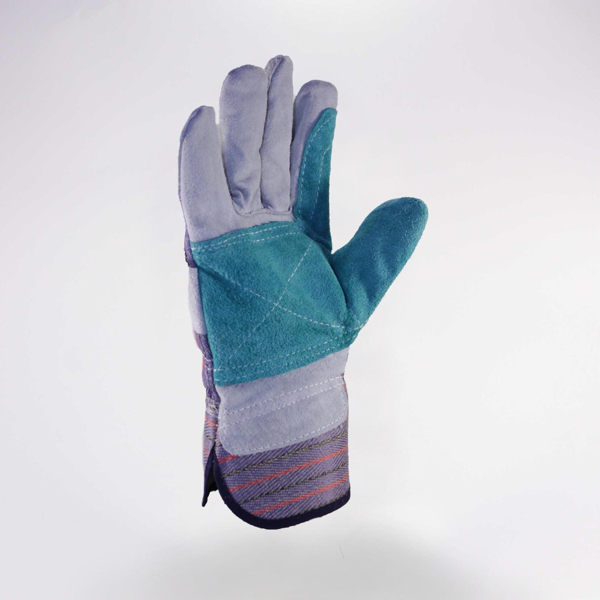 Перчатки комбинированные из качественного говяжьего спилка (толщина 1,2мм) и х/б ткани. Цельнокроенная ладонь из спилка. Ладонь, большой и указательный пальцы усилены дополнительным слоем спилка. Флисовая подкладка на ладонной части. Манжет - жесткая крага.
