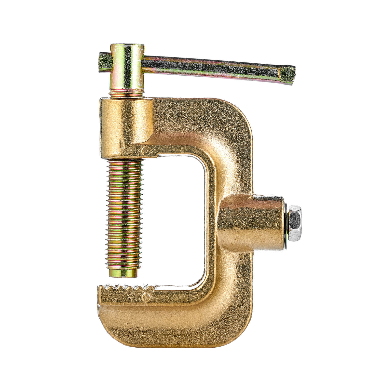 Клемма заземления КЗ-66 рассчитана на сварочный ток до 600 Ампер. Гарантирует плотный контакт в месте подключения. Струбцина состоит из G-образного основания с креплением под кабель и винтового контактного упора. Резьба на винтовом контактном упоре струбцины 13 мм. Ширина губок составляет 26 мм.
