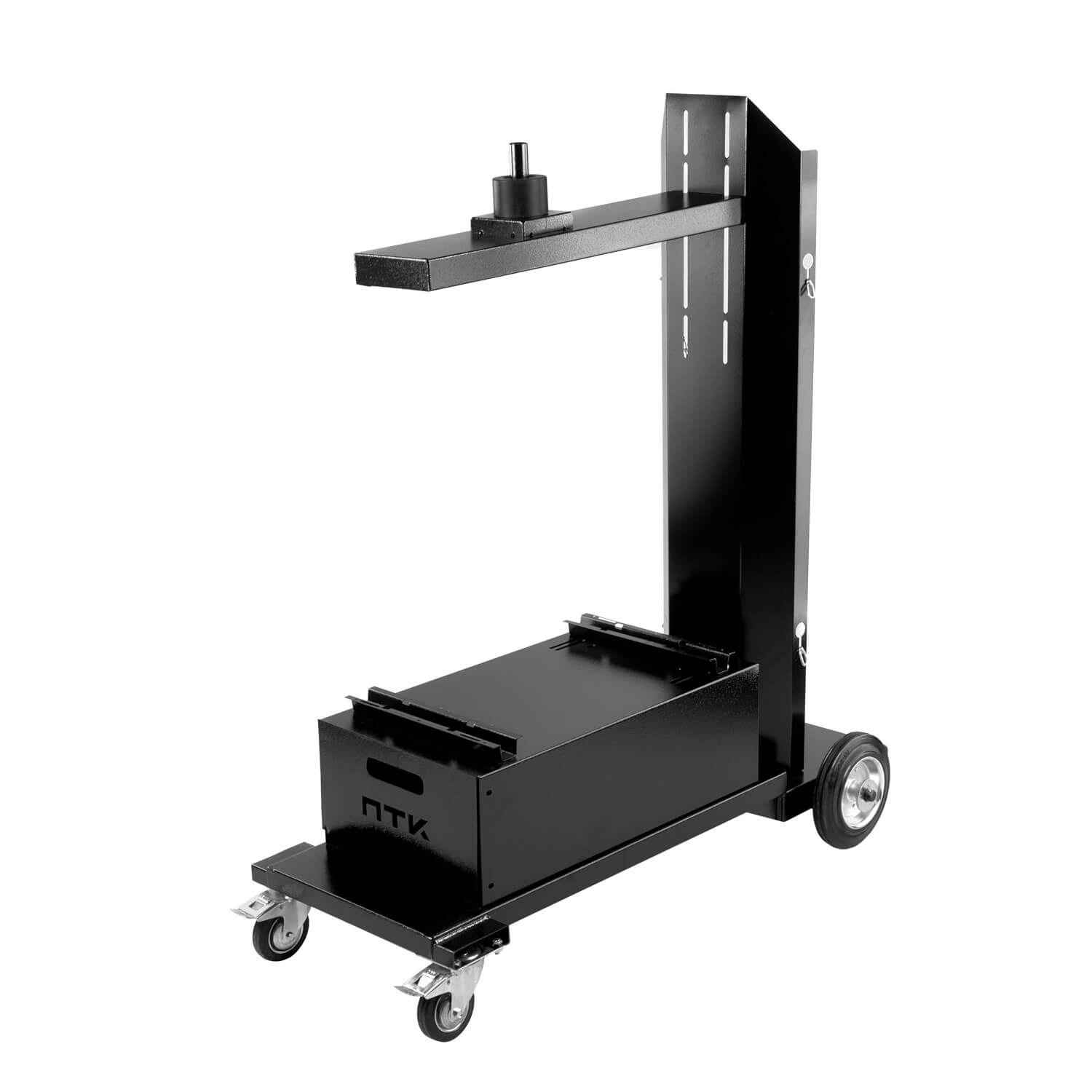 Передние вращающиеся колеса с тормозом и высокие устойчивые задние колеса обеспечат удобное и быстрое перемещение оборудования по рабочей зоне.