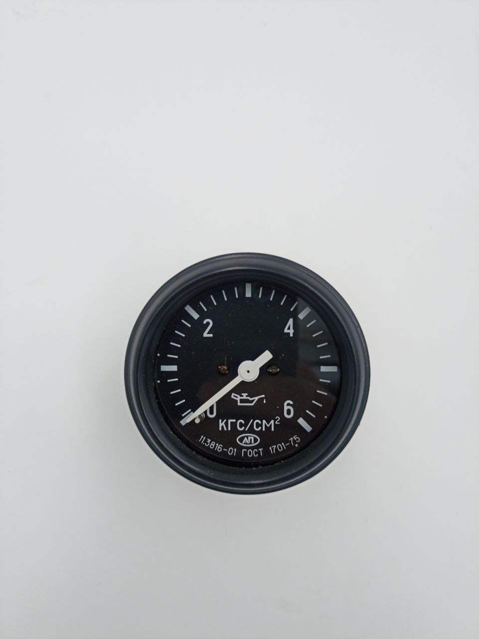 Манометр 1101.3816010 Применяемость:ГАЗ-66-01, 5903, 66-11, 66-40, УРАЛ-4322,5323, КамАЗ-4310, 4410, автомобили ЗиЛ Технические характеристики Диапазон показаний, кгс/см2: 0-6 Цена деления, кгс/см2: 0,2 Наименование символа на шкале по ОСТ37.001.012- (надпись на шкале): (кгс/см2) Присоединительный размер штуцера для подключения трубопровода, мм: М10х1 Наличие накидной гайки на штуцере: нет (защитный колпачок) Посадочный диаметр кожуха, мм: 60 Посадочный диаметр для ламподержателя подсвета (и сигнализатора), мм: 11,5